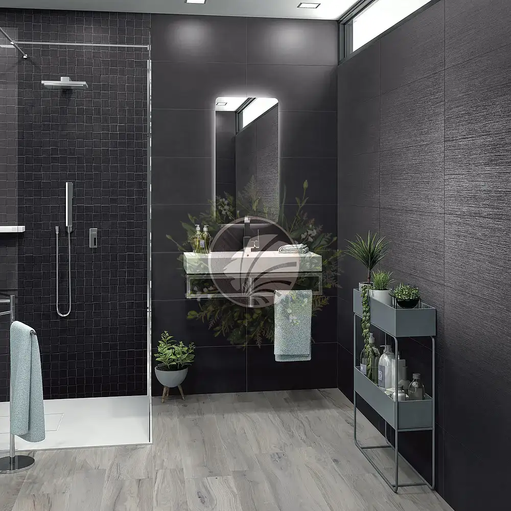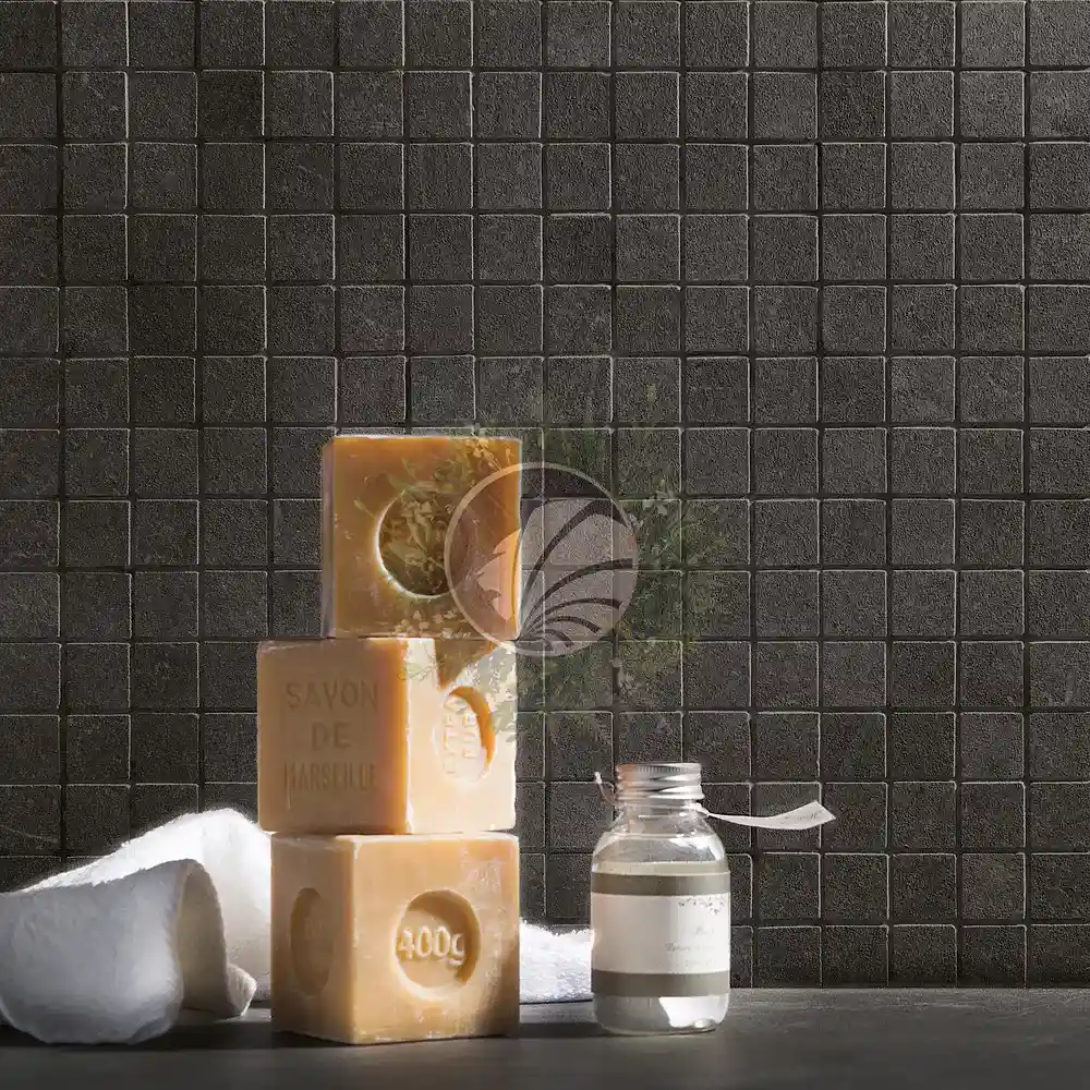 Avec les mosaïques en ardoise noire, vous pouvez obtenir un style plus moderne et contemporain, surtout si vous les combinez avec d’autres éléments comme le ciment, qui apporte une touche industrielle et brutaliste.