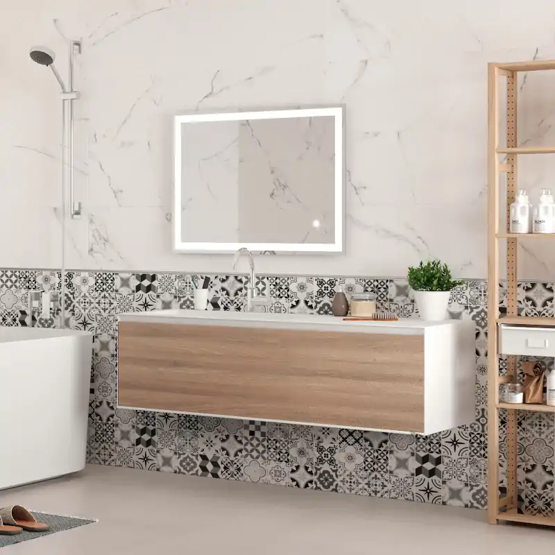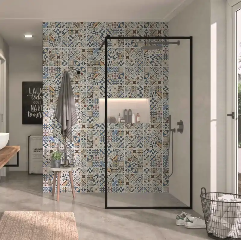 Nous avons les mosaïques à effet ciment les plus fidèles et spectaculaires, mais avec des matériaux beaucoup plus faciles à entretenir, comme le grès cérame et la pâte blanche et rouge. Ce sont des matériaux très polyvalents qui permettent de créer des imitations parfaites, avec une résistance et une durabilité uniques.
