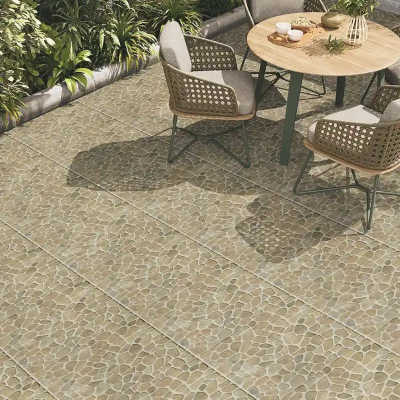 Voyez comment nos carrelages imitation galet s’intègrent parfaitement, un matériau idéal pour les murs et les sols.