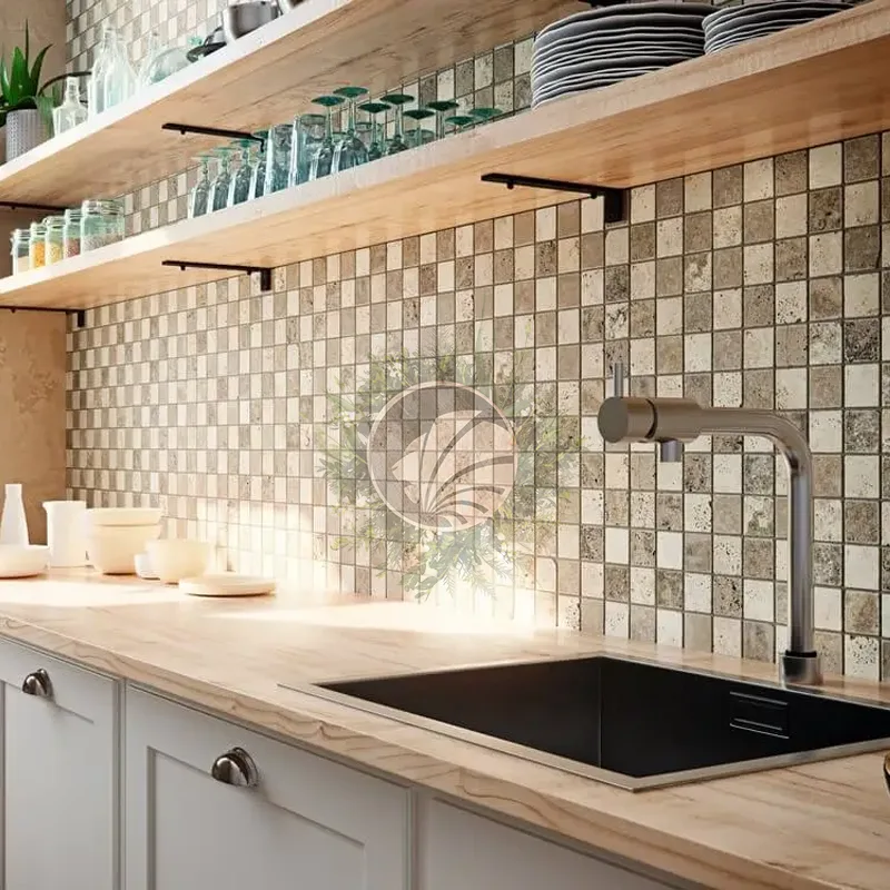 Nous vous proposons des mosaïques faciles à nettoyer et à entretenir, car nous savons que cette zone de la maison est sujette aux taches. Pour les zones à fort trafic, nous recommandons d’utiliser du verre, du métal (inoxydable) ou du grès cérame, car ce sont des matériaux plus faciles à nettoyer.