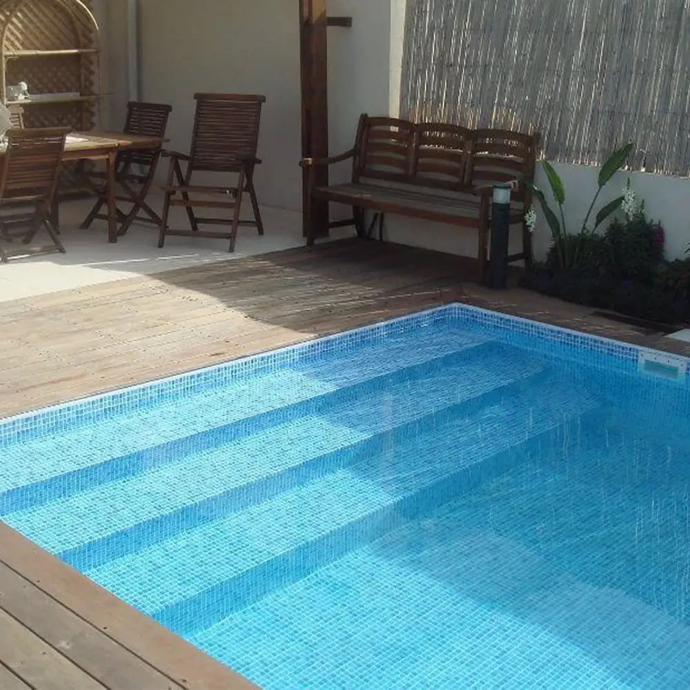 Piscine en fibre : Ce type de piscine a généralement une échelle intégrée. Dans le cas où cela ne se produirait pas, une échelle en fibre préfabriquée peut bien sûr être installée.