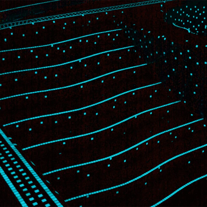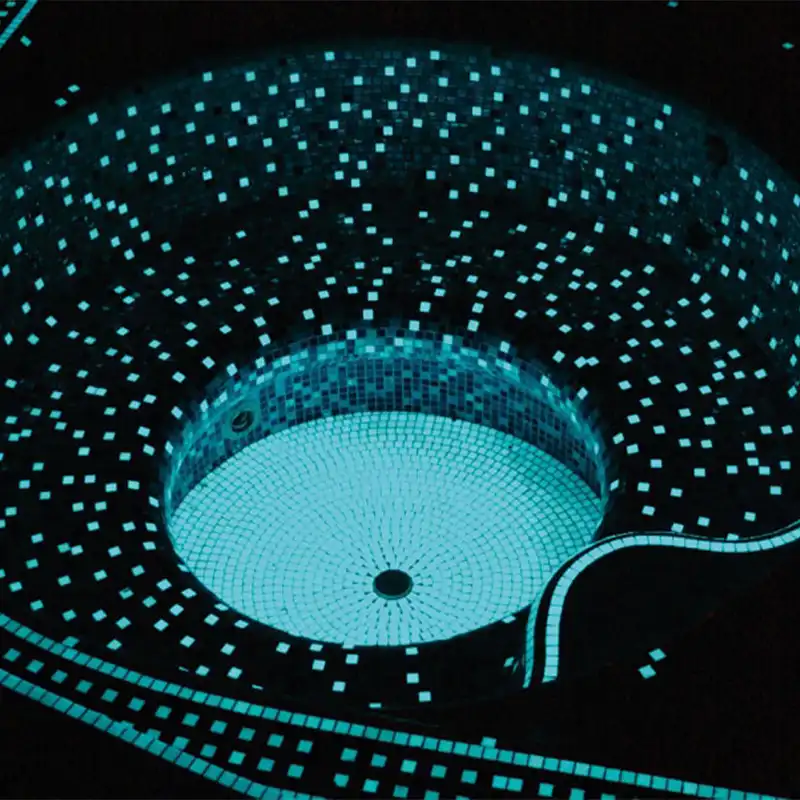 Ces tesselles accumulent la lumière reçue du soleil ou de la lumière artificielle dans le cas des piscines intérieures, puis la restituent en la diffusant pendant la nuit ou lorsque la source de lumière artificielle disparaît.