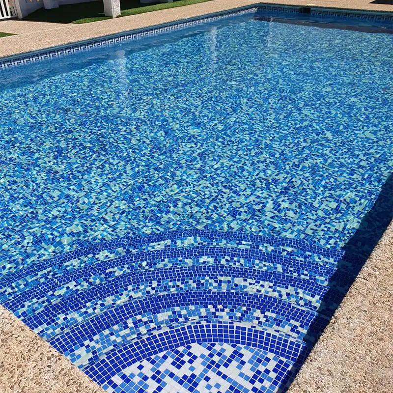 Au-delà de la beauté délicate de ces mosaïques brillantes, il convient de souligner leur fonctionnalité et leur résistance. Elles sont fabriquées en verre, un matériau peu poreux qui repousse l’eau et ne se détériore pas au contact permanent de celle-ci. Elles ne s’abîment pas non plus avec les variations de température, les changements de pression dans l’eau, ou les produits chimiques généralement utilisés pour le nettoyage et l’entretien des piscines.