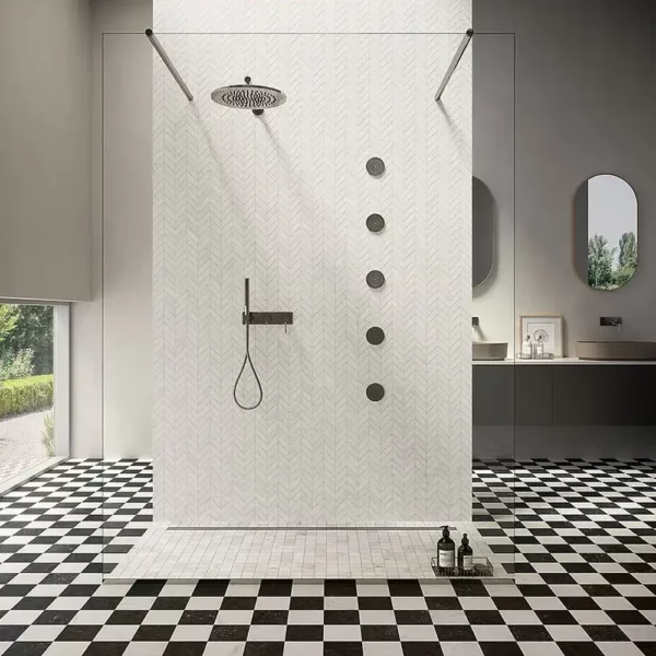 Ces carreaux en blanc brillant sont parfaits pour souligner l’élégance et la pureté d’un espace. Nous aimons les utiliser particulièrement dans les salles de bains, car associés à la blancheur de la céramique, ils mettent en valeur la propreté du lieu.