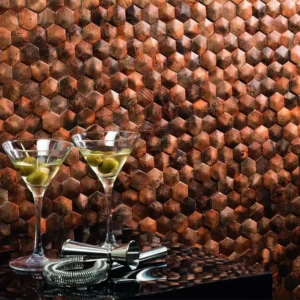 Parmi les plus belles nuances de marron, on trouve celle du bois naturel. Si vous souhaitez une mosaïque pour des zones non exposées à l’humidité, vous pouvez opter pour des mosaïques en bois véritable, idéales pour des coins chaleureux et rustiques.