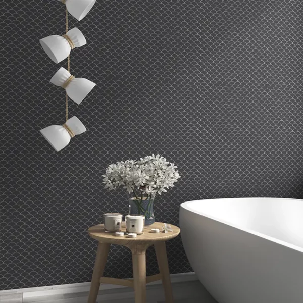 Optez pour une mosaïque noir mat, qui établira une apparence distinguée. TRecommandée pour les grandes pièces ou salles de bains, en particulier commerciales, vous pouvez également voir ce type de carrelage dans des modèles tels que: Ecailles Noir mat, Noir lisse mat, Hexagonal Noir mat ou Anthracite lisse mat.