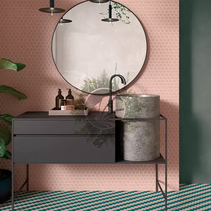 Le carrelage mosaïque rose est l’allié parfait pour obtenir une esthétique à la fois élégante et chaleureuse.
