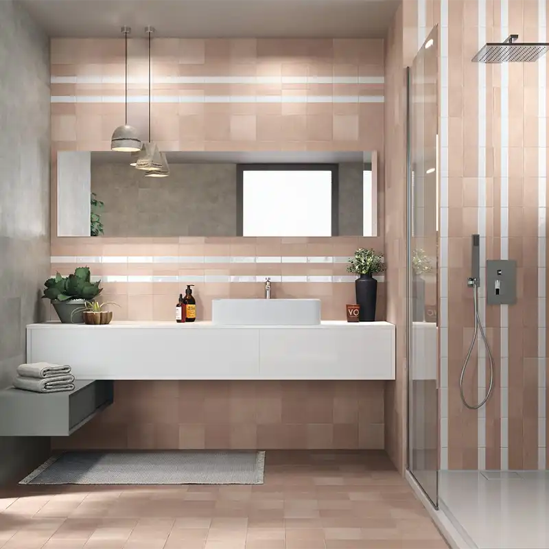 Contacte-nous dès maintenant et commence à concevoir votre nouveau projet avec du carrelage en grès cérame rose.
