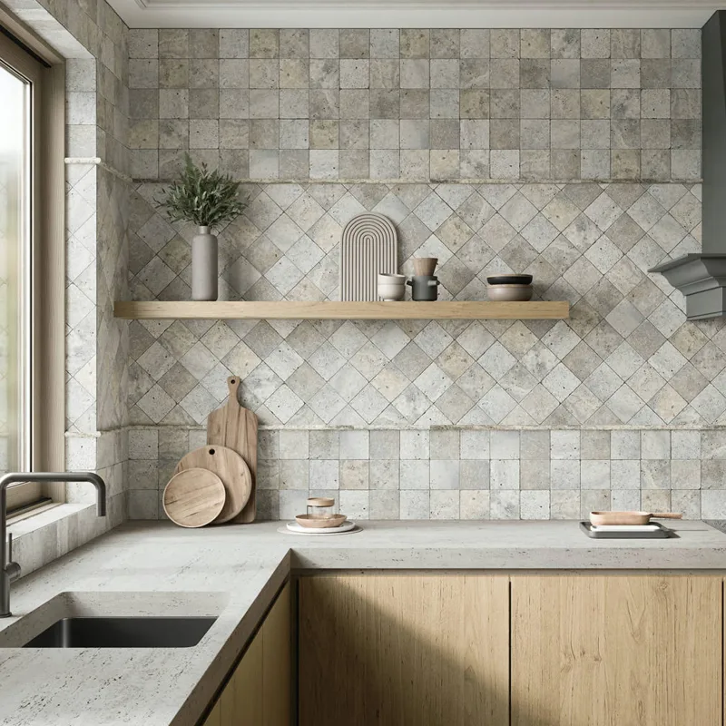 De plus, c’est un matériau très polyvalent, utilisé aussi bien sur les murs que sur les sols, les plans de travail ou les éléments décoratifs. Ses couleurs chaudes permettent également de créer des designs très variés en le combinant avec d’autres éléments.