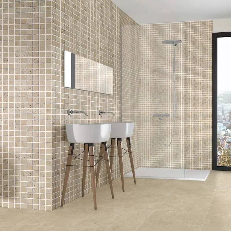 Le mosaïque travertin naturel peut être utilisé à la fois en intérieur et en extérieur. Cependant, il est important d’utiliser des adhésifs et des scellants adaptés pour garantir sa résistance en extérieur (adhésifs et joints flexibles ou époxy adaptés à la pierre naturelle), car en fonction des conditions atmosphériques, il pourrait être endommagé.