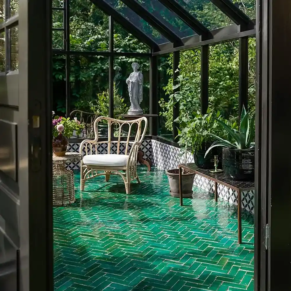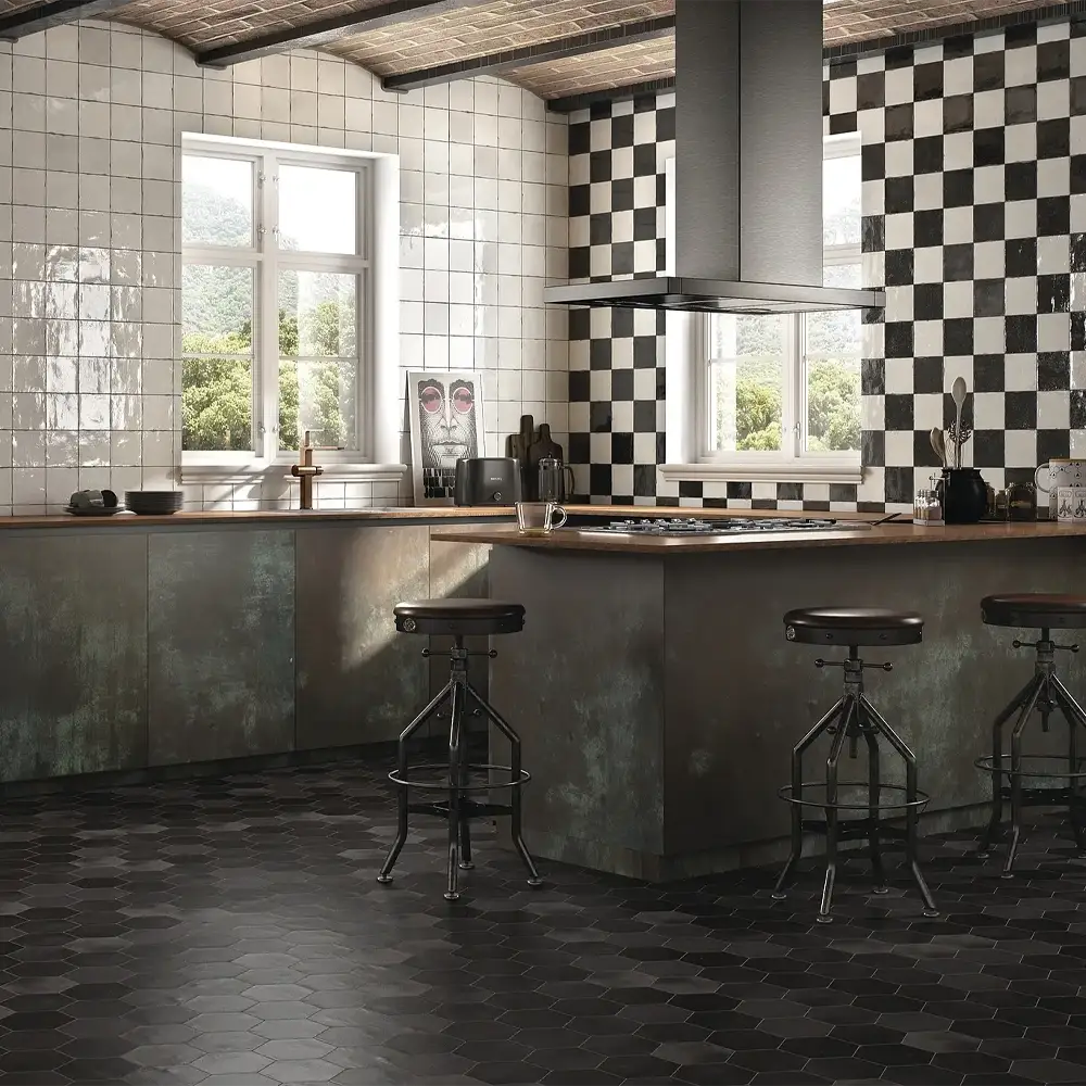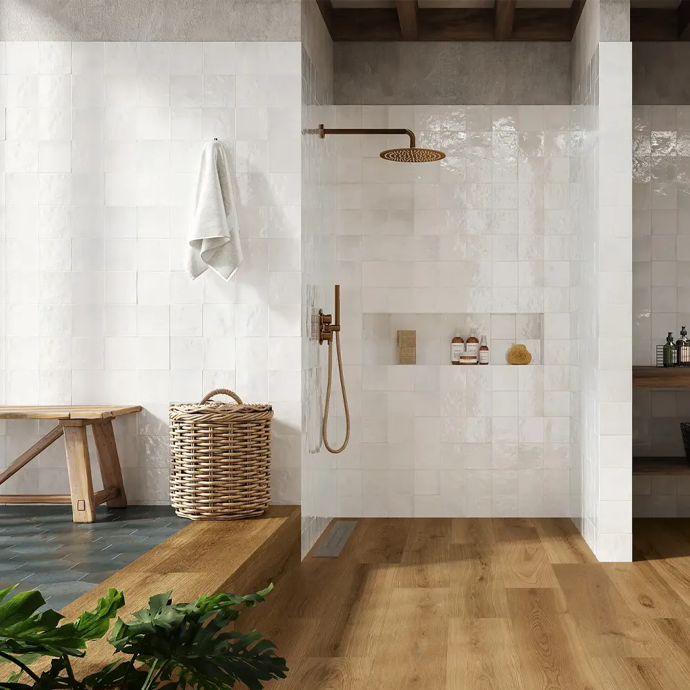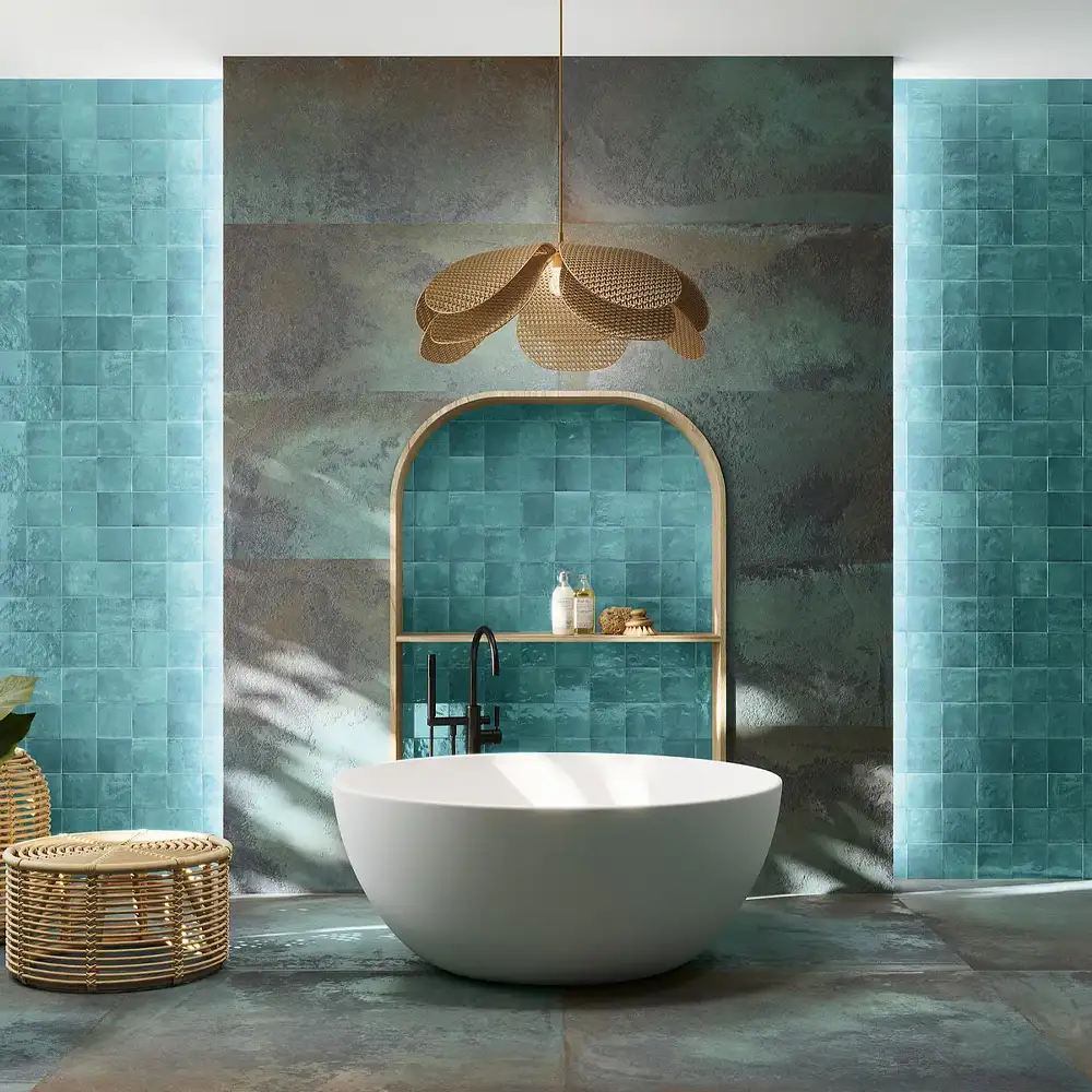 Vous pouvez l’utiliser dans les cuisines et les salles de bain, car il a une couche d’émail qui protège l’argile de l’humidité. Cependant, il est recommandé d’utiliser un joint résistant et imperméable (comme le joint époxy) pour éviter que l’humidité n’atteigne le corps du carreau zellige.